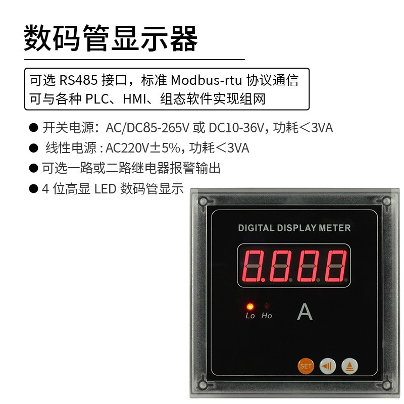 HY195系列數(shù)碼管顯示器,采用4位高顯LED數(shù)碼管顯示,通過RS-485數(shù)字接口送顯示數(shù)值,采用國際標(biāo)準(zhǔn)的modbus-rtu協(xié)議,可以與各種PLC、HMI、組態(tài)軟件實現(xiàn)組網(wǎng)。可選一路或二路繼電器報警輸出,實現(xiàn)上下限、上上限、下下限報警功能或遙控功能。