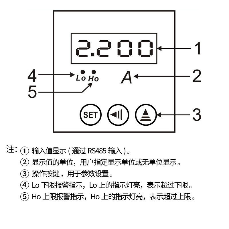 ⑤、Ho上限報警指示,Ho上的指示燈亮,表示超過上限。
