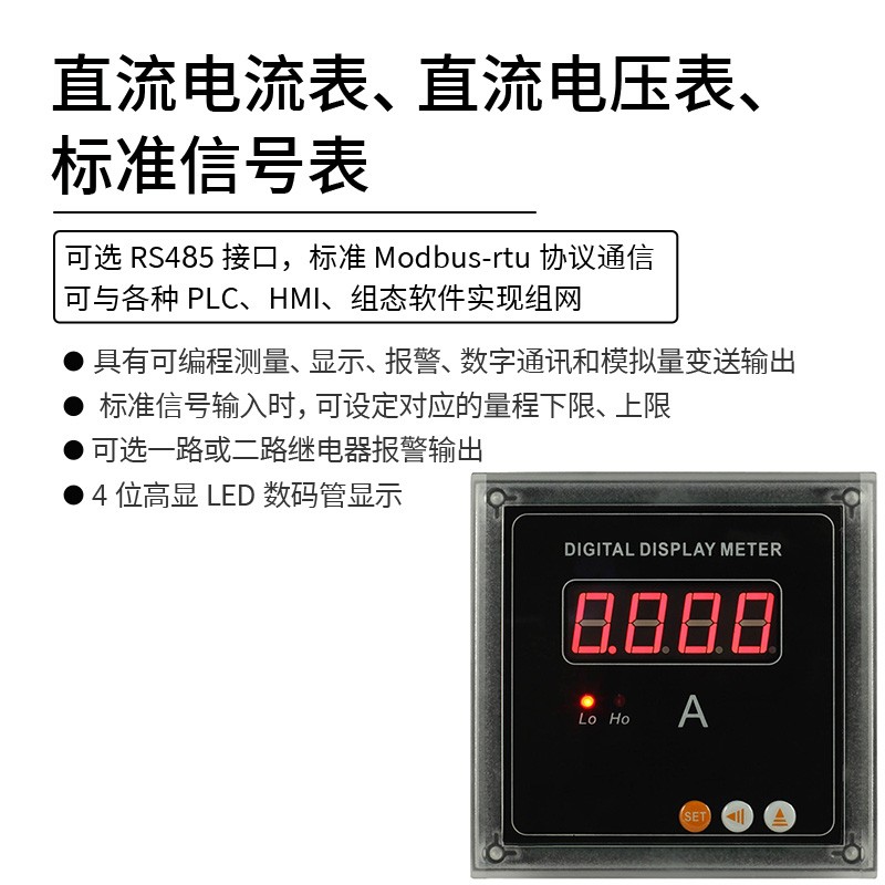 HY195系列數(shù)顯直流電流表、直流電壓表、標準信號表,是一種具有可編程測量、顯示、報警、數(shù)字通訊和模擬量變送輸出等功能的智能儀表,廣泛應用于配電自動化、智能建筑、自動化生產(chǎn)線、測試臺等。真有效值測量,精度高,穩(wěn)定性好。標準信號輸入時,對應的量程下限,上限可根據(jù)需要自由設定。